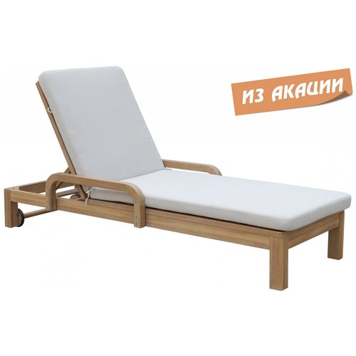 Шезлонг Rimini Tagliamento деревянный с матрасом для дачи, сада и бассейна, натуральная акация, цвет бежевый