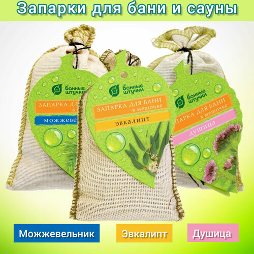 Набор травяных запарок для бани и сауны "Банные штучки", 3 шт. (можжевельник, эвкалипт, душица)