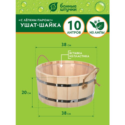 Ушат "шайка", 10 л, «С лёгким паром», с пластиковой вставкой, липа Класс Б "Банные штучки"