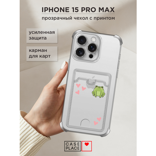 Чехол на Apple iPhone 15 Pro Max (Айфон 15 Про Макс) с картой и принтом С лягушкой и сердечками