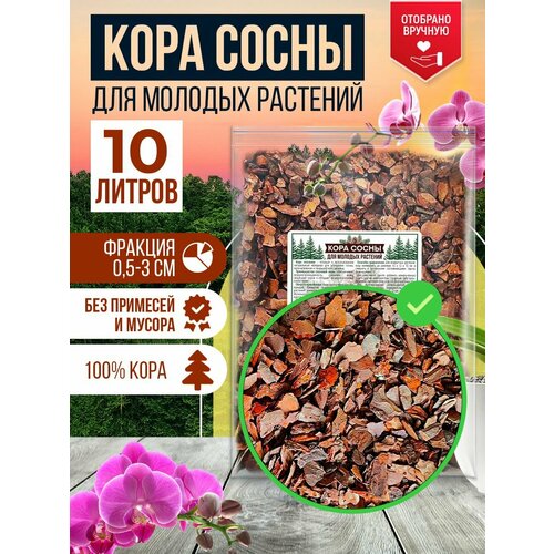 Кора сосны для молодых растений. Грунт для орхидей. Субстрат. Фракция 0,5-3 см, 10 литров.
