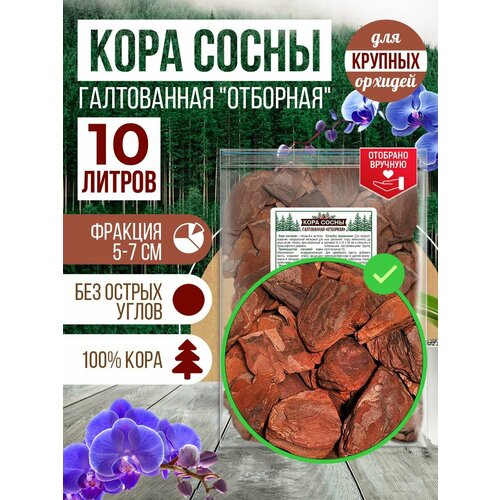Кора сосны галтованная отборная. Грунт для орхидей, субстрат универсальный. Фракция 5-7 см, 10 литров.