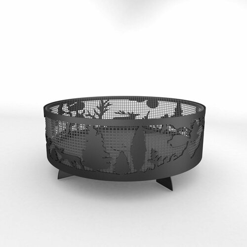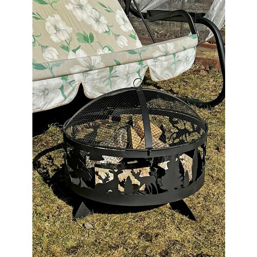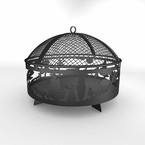 Костровая чаша Олени диаметр 80 см с зольником и защитной сеткой / Чаша для костра FIRE-HOUSE