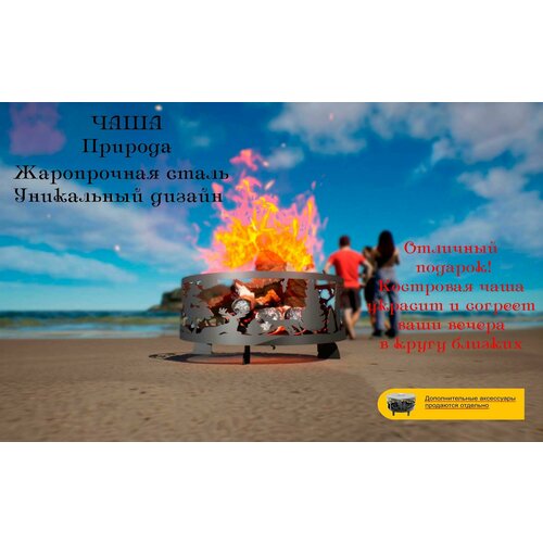 Костровая чаша Природа 60 см 0,3 см с сеткой-искрогасителем