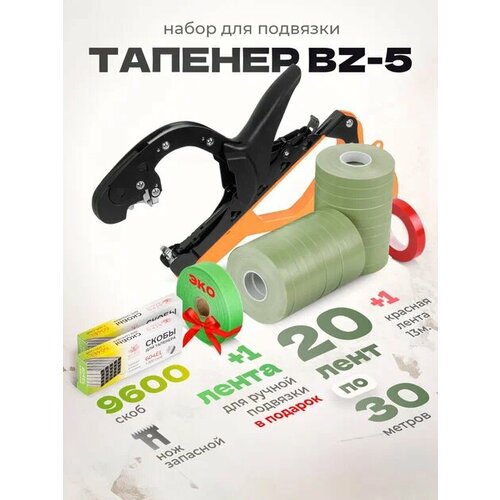 Тапенер BZ-5 + 20 оливковых лент + скобы 9 600 шт + ремкомплект, Степлер садовый для подвязки растений