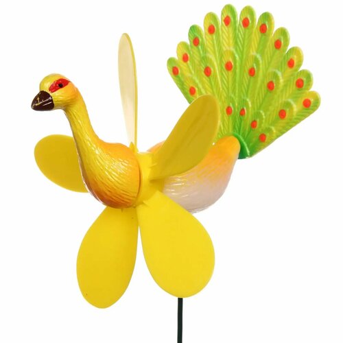 Фигура на спице «Павлин», отпугиватель птиц, пластик/металл, жёлтый/зелёный, 10×12×40см, для сада