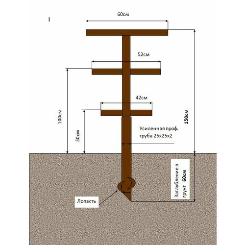 Шпалера-бур 1шт. Коричневая. Высота 1,5м, ширина 0,6м. Для малины, ежевики, винограда.
