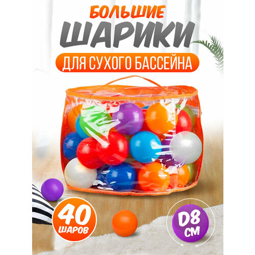 Шарики для сухого бассейна 40 шт пластиковые 8 см, разноцветный
