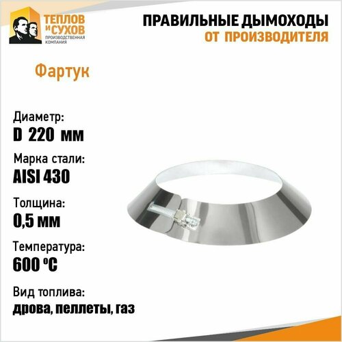 Фланец, юбка, фартук для дымохода декоративный нержавеющий (430/0.5мм) Ф200 Corax