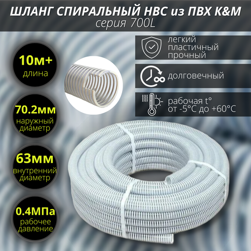 Шланг ПВХ 63 мм напорно-всасывающий белый,10 метров +.
