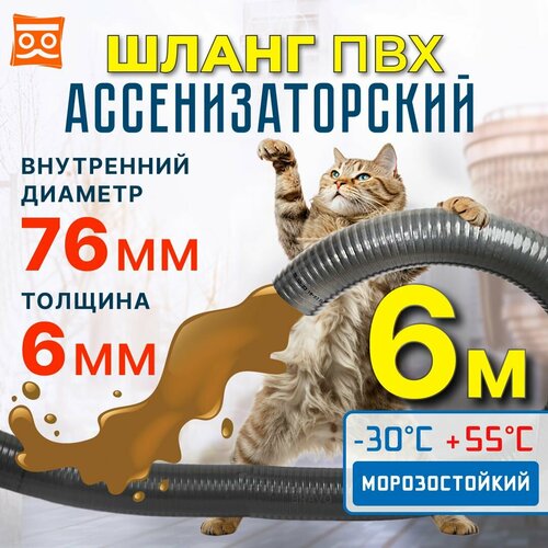 Ассенизаторский шланг 76 мм, ПВХ, армированный, морозостойкий, 6 метров