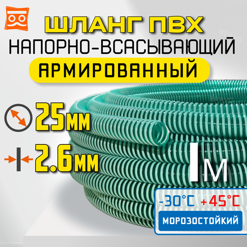 Напорно-всасывающий шланг для дренажного насоса 25мм - 1 метр. Многолетний, морозостойкий, супер-прочный