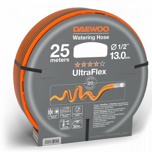 Шланг для полива DAEWOO UltraFlex DWH 8117 (1/2", 13мм, 50м) оранжевый, серый, оранжевый
