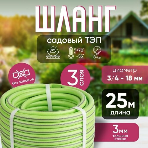 Шланг садовый поливочный морозостойкий ТЭП, резиновый армированный, 3/4 (18 мм), зеленый, 25 м