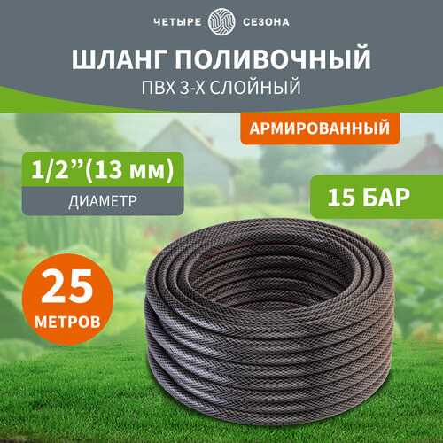 Шланг поливочный ПВХ 3-х слойный армированный 1/2 25м Люкс, четыре сезона 620228 (1 шт.)