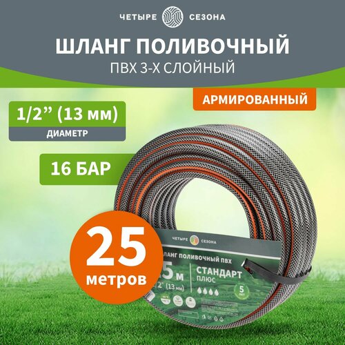 Шланг поливочный ПВХ 3-х слойный 1/2дюйма 25м Стандарт ЧЕТЫРЕ СЕЗОНА 62-0224 100067673376