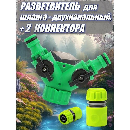 Разветвитель для шланга двухканальный 3/4", тройник пластиковый ударопрочный в комплекте с коннекторами / 2 шт