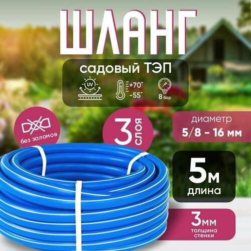 Шланг садовый поливочный ТЭП армированный 5/8 (16 мм), 5 м / Шланг резиновый