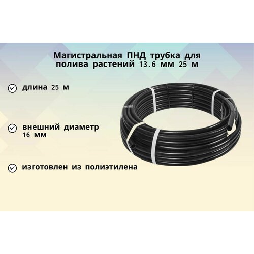 Магистральная ПНД трубка для полива растений d 13,6 мм, 25 м, для эффективной подачи воды - применяется в садоводстве, приборостроении, пищевой промышленности