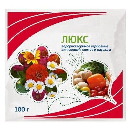 Комплексное минеральное удобрение "Люкс" 100 гр. Средство способствует хорошему росту растений. Удлиняет период цветения. Рекомендуется для подкормок