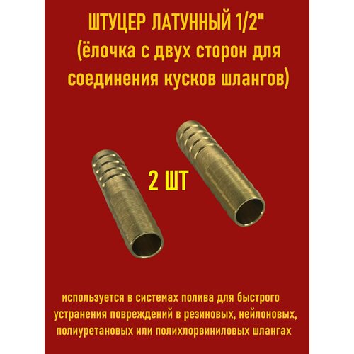Комплект штуцеров латунных 1/2" дюйма, ёлочка с двух сторон, для соединения кусков шлангов, 2 шт.
