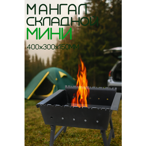 Мини Мангал складной 400*300*150мм, сталь 3мм, на 7 шампуров