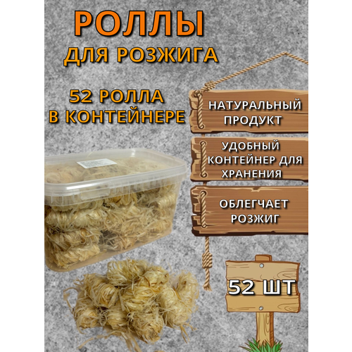 Древесные роллы в пластиковом контейнере - 52 шт.