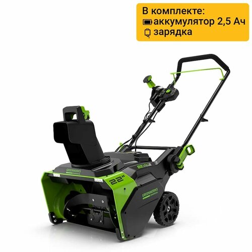 Снегоуборщик аккумуляторный Greenworks GD82STK2, 82В, 56 см, бесщеточный, с АКБ 2,5 Ач и ЗУ, 2602507UA