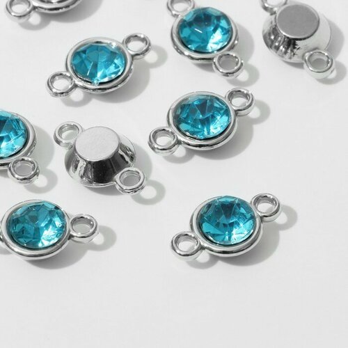 Коннектор Круг 2,4*1,5*0,7см, (набор 10шт), цвет голубой в серебре