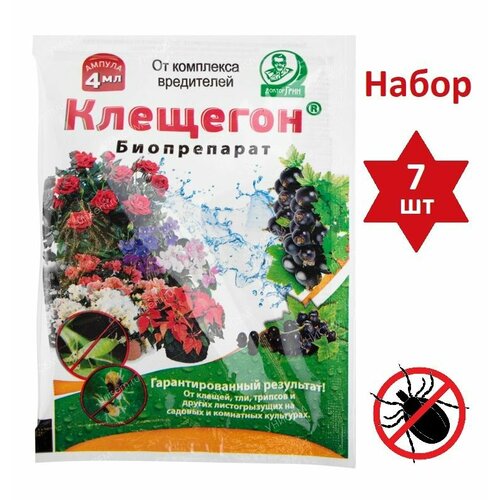 Средство от клещей, тли и других насекомых-вредителей клещегон Супер Доктор Грин биопрепарат для растений, 8 мл (4 шт по 2 мл)
