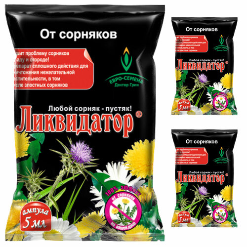 Ликвидатор средство от сорняков 15 мл, набор 3 ампулы по 5 мл