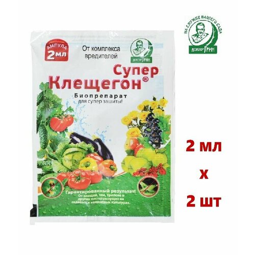 Средство от клещей, тли и других насекомых клещегон Супер Доктор Грин биопрепарат для растений, 4 мл (2 шт по 2 мл)