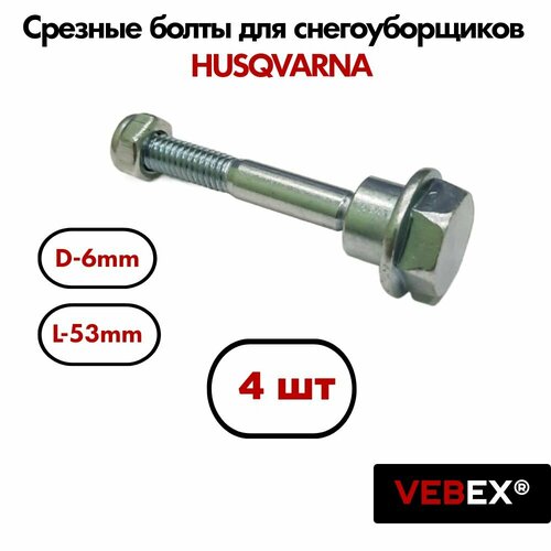 Болты срезные с гайкой (4 шт) для снегоуборщиков HUSQVARNA М6 х1.25 длина 53мм / VEBEX