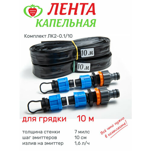 Лента капельная 2 шт, "Клубничная грядка" длина 10м, шаг 10 см, ЛК2-0.1/10, капельный полив, комплект