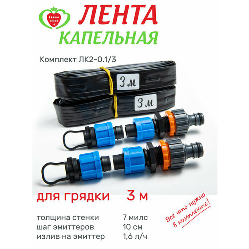 Лента капельная 2 шт, "Клубничная грядка", длина 3м, шаг 10 см, ЛК2-0.1/03, капельный полив, комплект