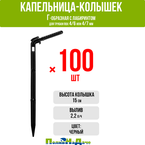 Капельница-колышек с лабиринтом Г-образная 15см, чёрная (подключается к ПВХ трубке 4/6 или 4/7мм) - 100 шт