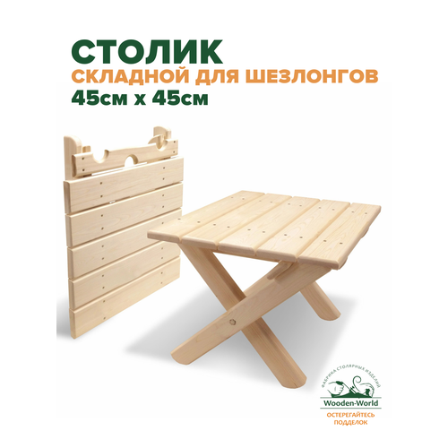 Столик складной деревянный для шезлонгов, стол садовый из массива дерева низкий