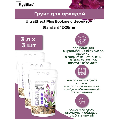 3 шт: Грунт для орхидей c Цеолитом Standard 12-28mm 3,0 л