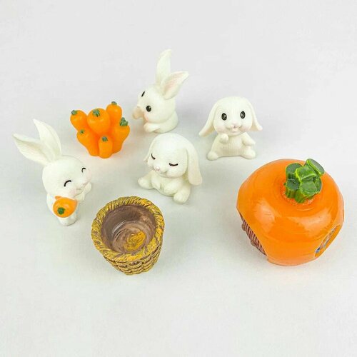 Декоративная фигурка, набор "Рождественские белые кролики" для цветочного горшка, Набор садовых фигурок для комнатных растений, Декор цветочный