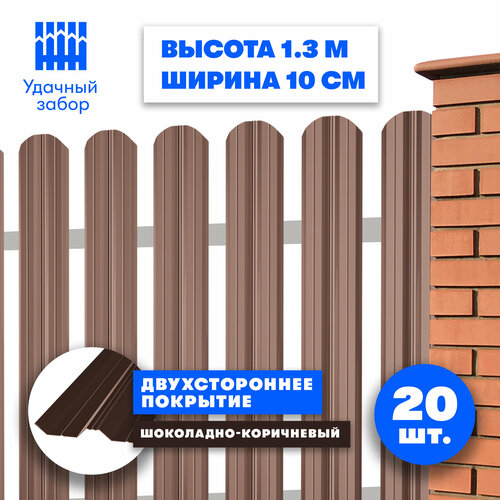 Штакетник металлический Классик (двусторонний окрас, цвет шоколадно-коричневый, высота 1.3 м, ширина планки 10 см, 20 шт, саморезы в комплекте)