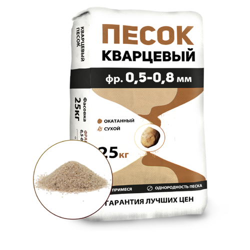 Кварцевый песок Ratmix 0,5-0,8 мм, для фильтрации воды, 25кг