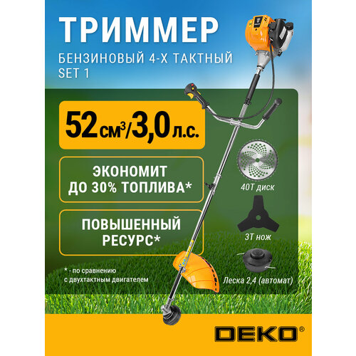 Триммер DEKO DKTR52, переносной, с леской и ножом, бензиновый, 3 л. с.