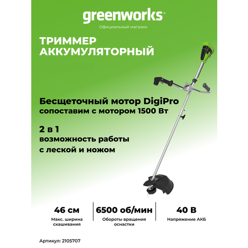 Триммер аккумуляторный Greenworks 2105707, 40V, 40 см, бесщеточный, без АКБ и ЗУ