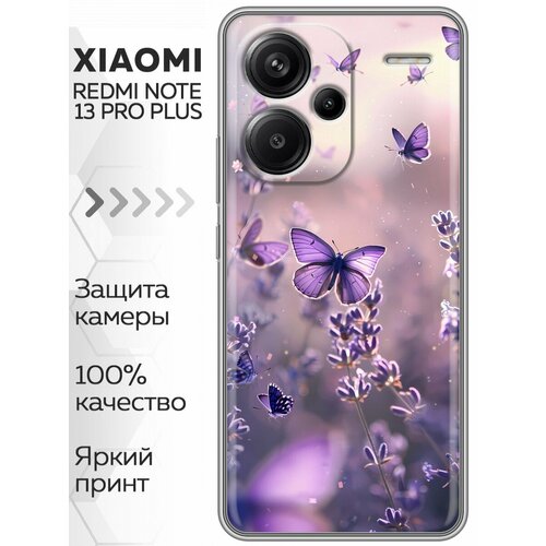 Чехол для Xiaomi Redmi Note 13 Pro Plus 5G с принтом бабочки и лаванда (Сяоми Редми Нот 13 Про Плюс 5G)
