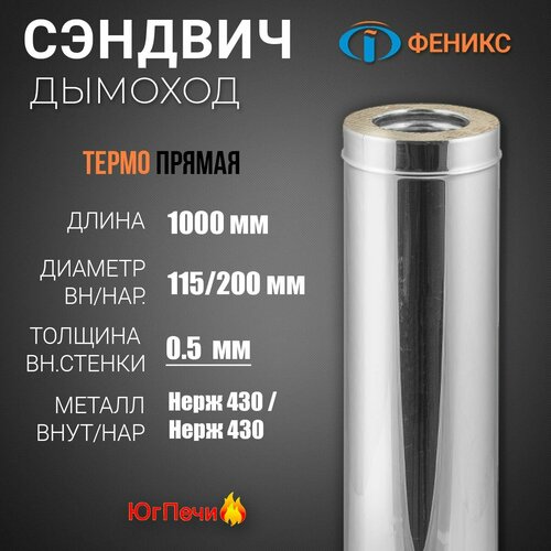 Феникс Сэндвич Труба D115*200 L1000 (430/1,0 мм + Нерж.)