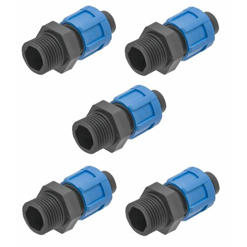 Адаптер для капельной ленты с внешней резьбой, 1/2" на 16 мм, 5 шт.