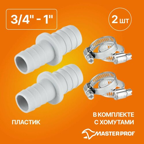 Соединитель для поливочного шланга, пластик 22х22мм с хомутами оцинк. 9мм 16-25 MasterProf MP ДС.020045 15638000