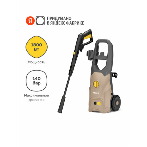 Мойка Nocord, 1800Вт, 140 бар - 105 бар, 420 л/час, грязевая фреза, пеногенератор 600 мл, кабель 5 м, шланг 6м, колёса, NPW-1800.140.420.0