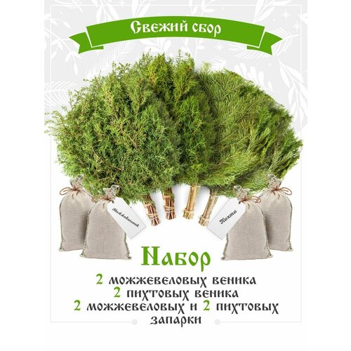 Набор Веники для бани Пихтовый 2шт Можжевеловый 2шт + банные запарки 4шт