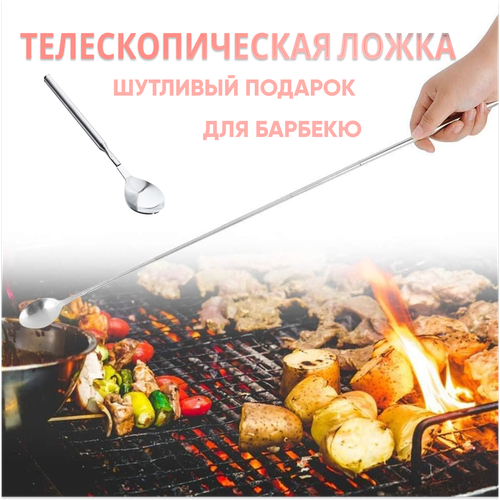 Телескопическая ложка, серебристая, 21 см, для барбекю, металл, 1 шт.